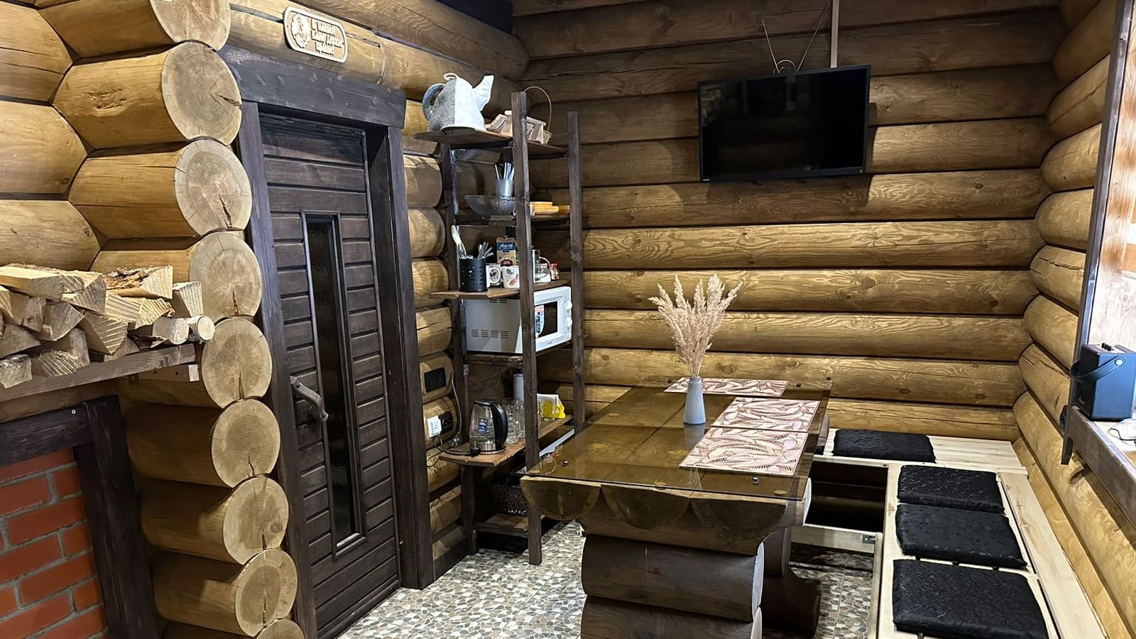 - Bluetooth колонка, Живой камин на дровах, Комната отдыха, Посуда+приборы, СВЧ печь